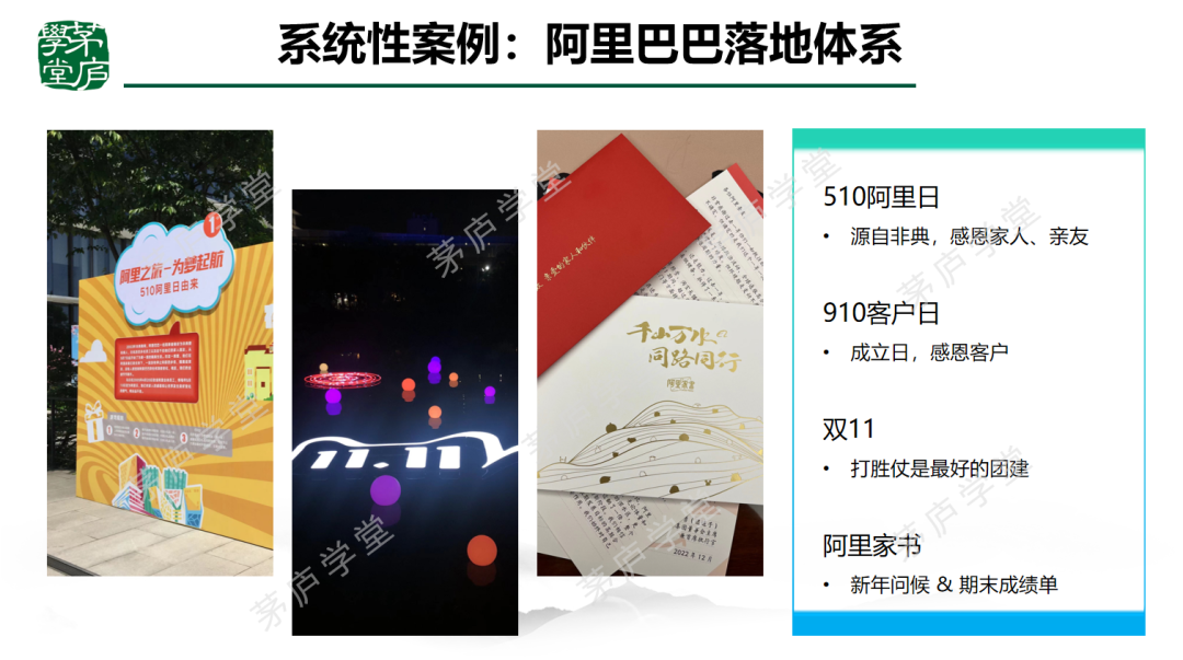 在阿里,典型的文化仪式主要有这四件:阿里日、客户日、双11、阿里家书,内部俗称“三节一书”。